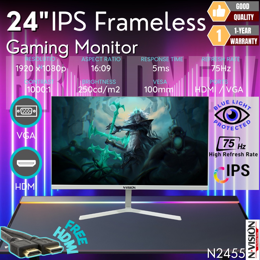 Nvision 23.8" N2455 White IPS Frameless Monitor Shopee Philippines